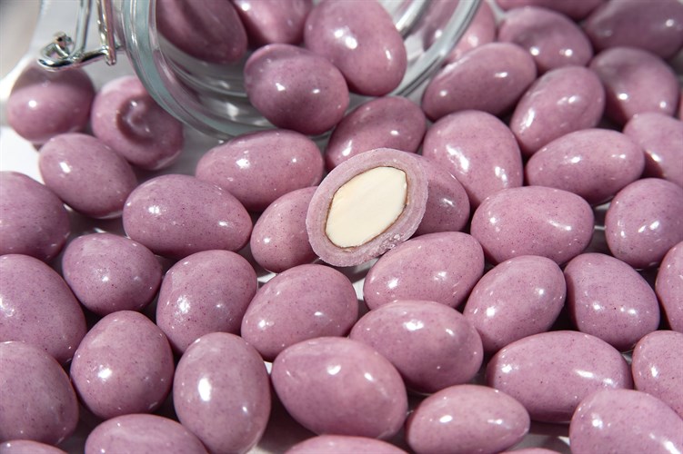 Драже "Миндаль в белом шоколаде с сублиматом сливы - Tropica Premium" (короб 3 кг)
