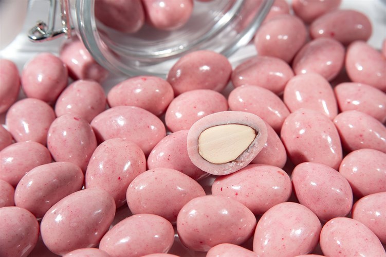 Драже "Миндаль в йогуртовом шоколаде с сублиматом барбариса - Tropica Premium" (короб 3 кг)