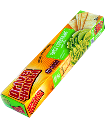 Чипсы «Драйв» - 8 ярких вкусов в знакомом и любимом с детства формате чипсов - «пластинок»!Тонкие, хрустящие пластины чипсов «Драйв» в отличие от обычных чипсов сразу тают во рту, а приятный вкус белых грибов со сметаной, курицы, бекона, барбекю, тайского перца, сметаны и сыра или сметаны и лука, васаби никого не оставляют равнодушными.Такие чипсы прекрасно подойдут в качестве закуски к различным напиткам и быстро утолят легкий голод.