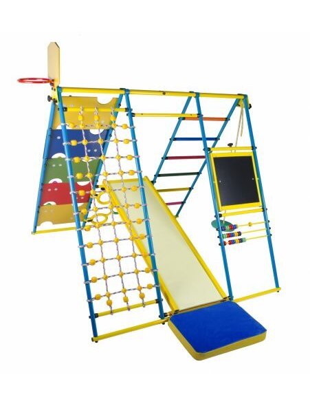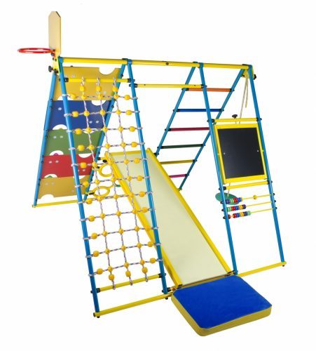 ДСК Вершинка - это игровой комплекс для самых маленьких, чтобы ребёнок проводил время с интересом и пользой. Вершинка 2.0 можно установить на улице, на загородном участке или даче. Комплектация включает в себя: мат, горка, тарзанка, лесенка-кольца, кольцо для мяча, сетка для лазания, мольберт со счётами, панель с отверстиями. Высота - 1 м 54 см. Ширина - 1 м 48 см. Глубина - 1 м 64 см. Конструкция полностью складывается, ширина в сложенном состоянии - 16 см. Металлическая конструкция выдерживает - 100 кг.