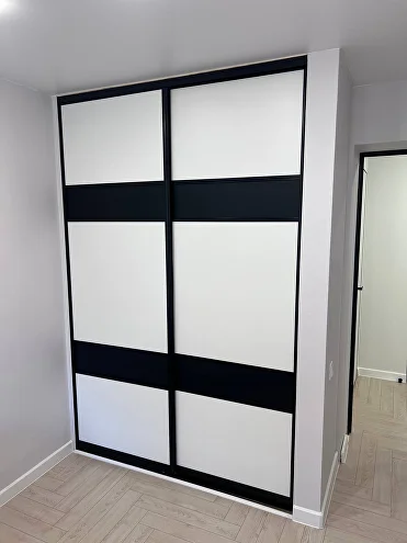Двери купе для шкафов в Новосибирске. Предлагаем изготовление дверей купе для шкафов на заказ в Новосибирске. В проекте используются 2 двери, современный чёрный профиль, наполнение ЛДСП белый, а также стильные вставки мателюкс с черной пленкой, что придает интерьеру элегантность и визуальную легкость. Двери купе идеально подходят для экономии пространства. Мы выполняем замеры, производим изготовление и установку дверей купе по индивидуальным размерам в Новосибирске. Закажите двери купе для шкафов в Новосибирске уже сегодня и получите стильное решение с сочетанием черного профиля, белого ЛДСП и вставок мателюкс! Цена* актуальна на 30 сентября 2025 года — 35900 ₽. Срок изготовления — 4 рабочих дня. *Изготовление+доставка+установка