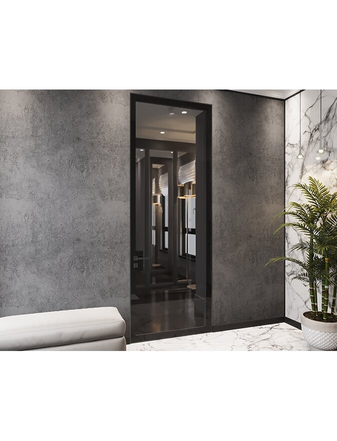 Линейка Ками — это современные скрытые двери с полностью стеклянным дверным полотном. Возможна установка одного или двух стекол. Позволяет собирать различные комбинации прозрачных и матовых стекол, тонированных и с зеркальным эффектом, а также установку зеркал в сочетании с шпонированными панелями. Дверное полотно собирается на базе специального алюминиевого профиля.