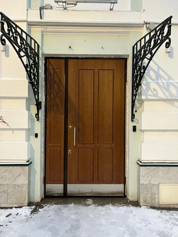 Дверь двупольная с фрамугой максимального остекления Бр1, металлическая, бронированная, утепленная. Предназначена для уличного использования, подходит как для дома так и для коммерческой недвижимости. Дверь предусматривает защиту от поражения пулями автоматического пистолета Стечкина (АПС). Указанный уровень защиты сопоставим с прежним первым классом, предусматривавшим защиту от поражения пулями пистолета Макарова и револьвера типа «Наган».