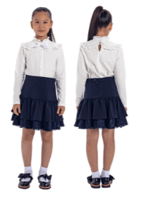 Джемпер из тонкого трикотажа, на полочке имитация планки с пуговицами, длинные рукава, спинка со средним швом с застежкой на пуговицу, воротник стойка, по краю стойки вставлена оборка. У джемпера есть съемный воротник из вышитого фатина, в край воротника вставлено кружево, декоративный бантик с металлическим украшением.