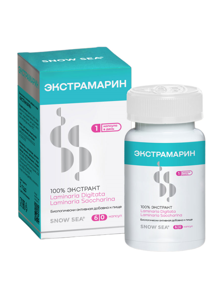 Экстрамарин для восполнения запасов йода и здоровья щитовидной железы БАД, 60 капс 100% экстракт морской бурой арктической водоросли ламинарии (Laminaria Digitata и Laminaria Saccharina), добытой в экологически чистых зонах Белого моря вблизи Соловецких островов.ЭКСТРАМАРИН содержит йод в биодоступной форме, благодаря чему передозировка невозможна – излишки выводятся из организма без вреда для него. Организм возьмет ровно столько йода, сколько ему необходимо.