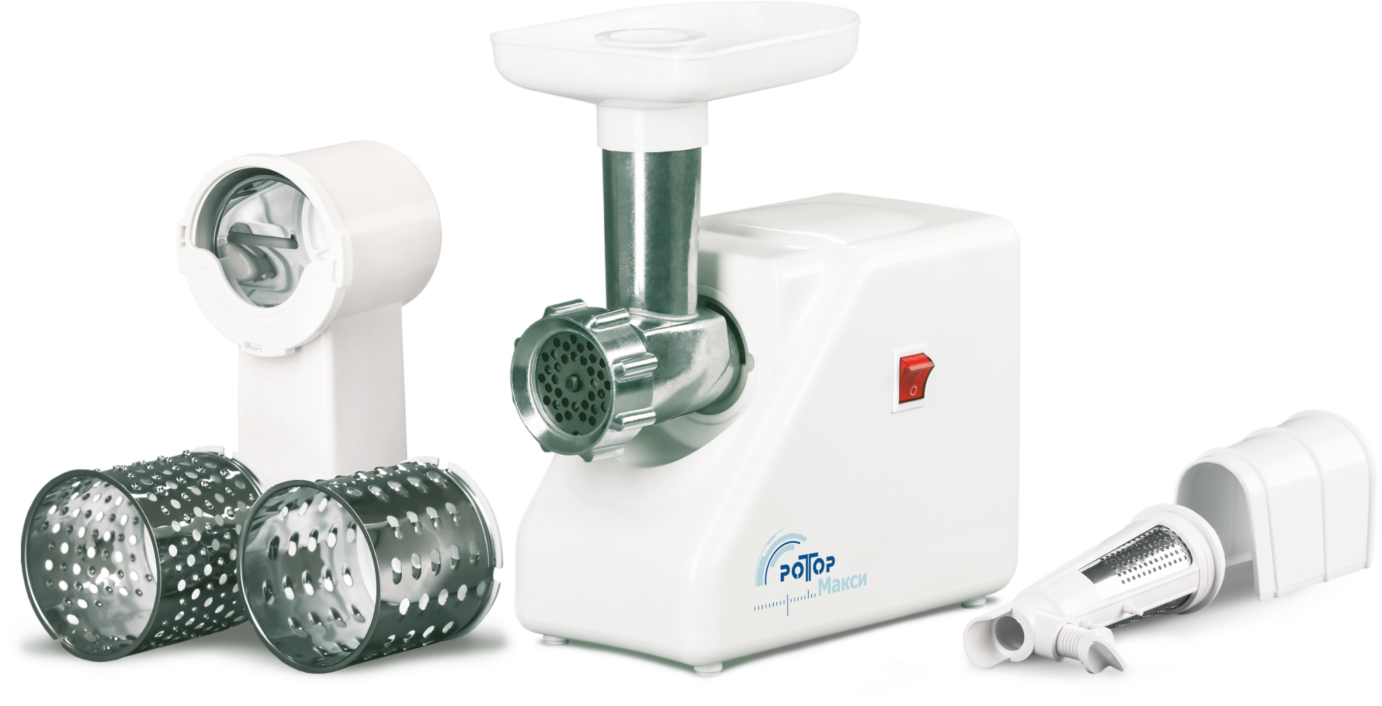 Конструктивная особенность модели — увеличенная в диаметре и длине труба, благодаря чему можно переработать большие объёмы продуктов быстрее! Измельчить мясо, рыбу или грибы, а также нарезать овощи для свежих и полезных блюд, приготовить свежевыжатые соки из фруктов, ягод или овощей — с «Ротор-Маски» можно всё! Выбирайте нужную насадку для обработки продуктов, будь то изготовление фарша, нарезка овощей или получение свежего сока. Корпус мясорубки изготовлен из качественного АБС- пластика, а благодаря устойчивым прорезиненным ножкам мясорубка остается на месте во время работы. Всего за один час Вы сможете получить до 35 кг фарша! Электрическая мясорубка "Ротор-Макси" очень проста в использовании и легка в обслуживании.