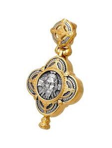 Энколпион "Спас Нерукотворный" - это двустворчатый православный крест-мощевик (энколпион), внутри которого хранятся святыни, а на лицевой стороне изображен лик Христа на убрусе. Используется как личная защита, путеводная звезда для воинов и путешественников, а также для укрепления веры и исцеления от болезней. Символика формы мощевика поддерживается традиционным для Православия плетеным орнаментом. Своим сложным узором, составленным из кругов и крестов, он показывает взаимосвязь Божественного и тварного, которые сосуществуют "неслитно и нераздельно" в преображенном Богом мире. Техника исполнения - мелкая пластика, скульптура, литье, позолота, чернение, ручная работа. Материалы - серебро 925 пробы, позолота 999 пробы. Размеры - 4,1*2,3*0,8 мм. Средний вес - 15.00 гр.