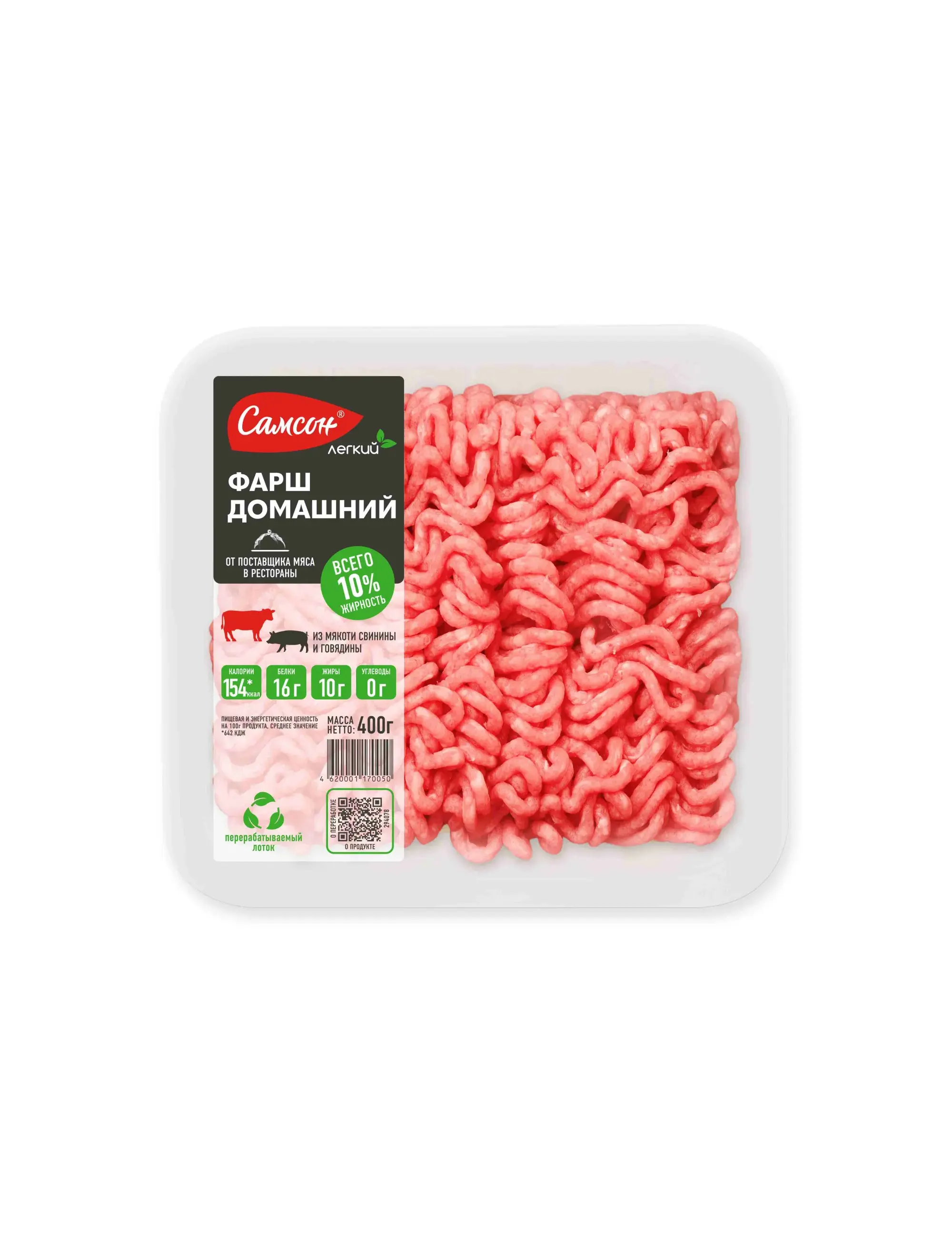 Фарш свино-говяжий – это ингредиент, который используется для приготовления различных блюд. Начиная от мясных пирогов и заканчивая всеми любимыми макаронами по-флотски. Большинство этих блюд, благодаря охлажденному полуфабрикату «Самсон», готовятся не дольше 20 минут. Экономьте свое время, сохраняя качество и отменный вкус блюд.