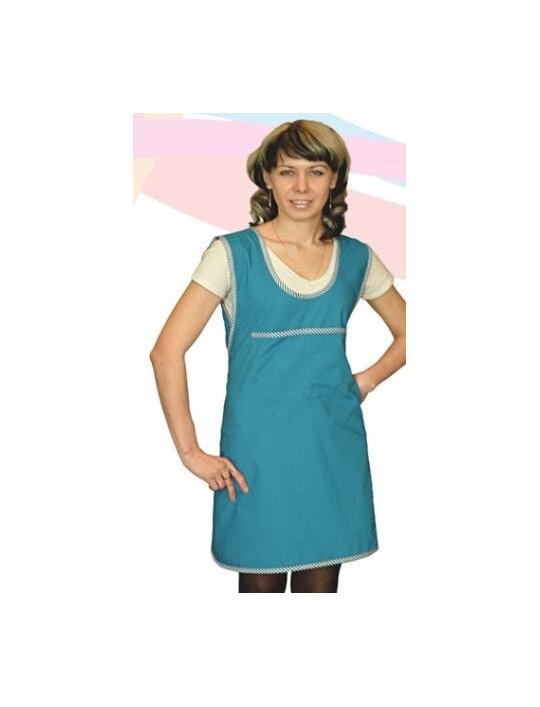 Фартук женский рабочий изготавливается из сорочечной или плащевой ткани , укороченны расклешённого силуэта с боковой застёжкой на молнию. Фартук считается износостойким и подходит для работы в сферах торговли и обслуживания, а также может служить рабочей униформой для женщин в любой сфере деятельности.