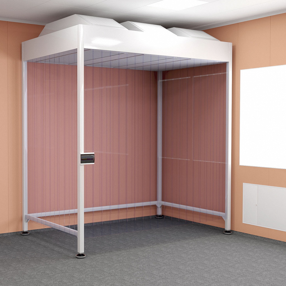Фильтровентиляционный модуль ФВМ-АМС 104/Стационарный - это высокоэффективный фильтровентиляционный модуль, предназначенный для очистки воздуха, создания однонаправленного (ламинарного) потока и поддержания высокого класса чистоты в локальных зонах. Он используется в медицинских, фармацевтических и микробиологических лабораториях для защиты технологических процессов от частиц и микроорганизмов. Модуль представляет собой металлический корпус, на входе в который установлен легкосъёмный фильтр грубой очистки G4. Внутри модуля расположена камера статического давления, на входе в которую установлен центробежный вентилятор со ступенчатой регулировкой скорости, а на выходе - высокоэффективный фильтр группы НЕРА. Степень засоренности фильтра контролирует датчик давления. Внутри камеры статического давления расположены система шумоглушения и УФ-облучатель обеззараживания фильтра НЕРА. Система управления автоматически поддерживает заданную скорость вне зависимости от степени засоренности фильтров. Габариты - 1868*598*520 мм. Масса - 90 кг.