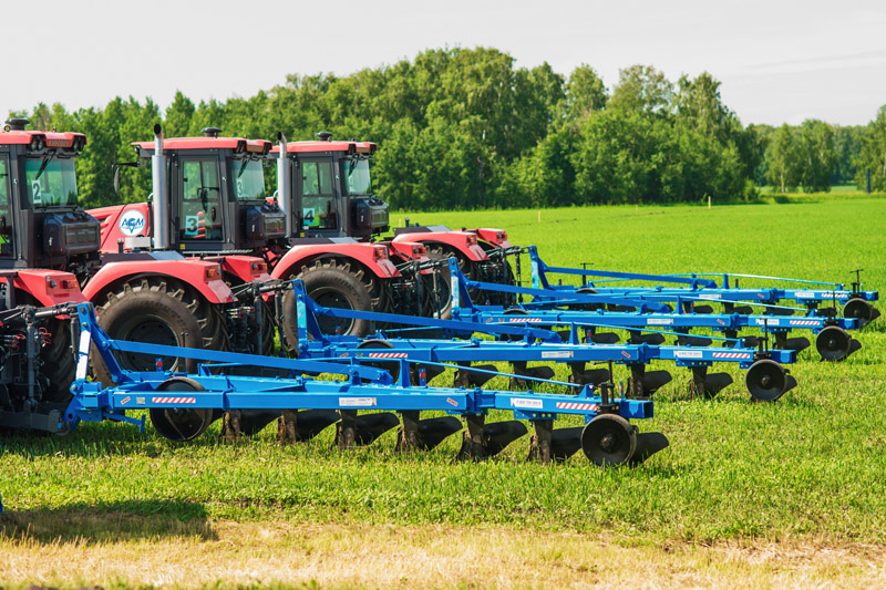 Восьмикорпусный плуг лемешный навесной FINIST ПЛН 8-35. Ширина захвата одного корпуса — 35 см, ширина захвата плуга — 2,8 м. Производительность за час — до 2,52 гектара в час. Агрегатируется с тракторами мощностью 240-350 л.с.: К-700, К-701, К-744 и др.