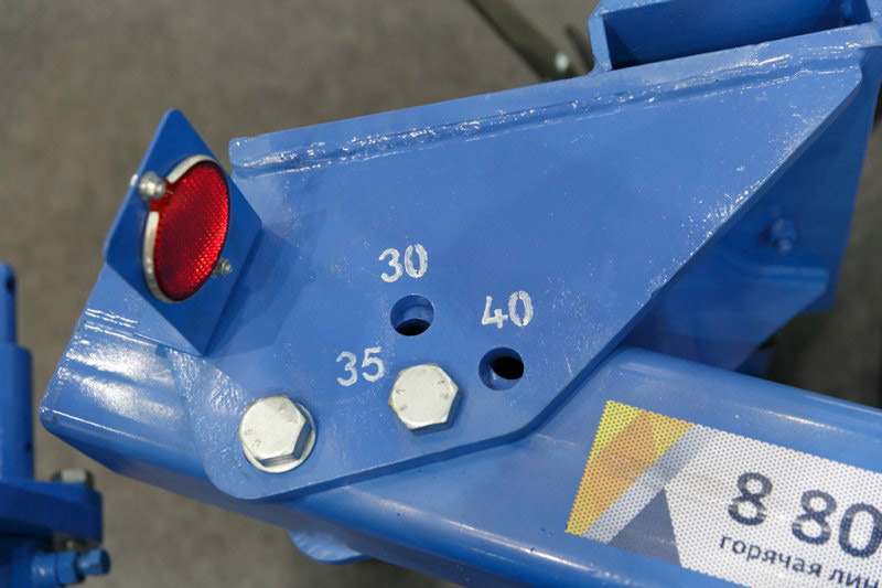 Ширина захвата корпуса ступенчато изменяемая — 35 / 40 / 45 см. Ширина захвата плуга — 1, 75/ 2 / 2,25 / м соответственно. Регулировки позволяют настроить плуг точно: с учетом мощности трактора, типа почвы, погодных условий.