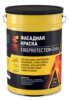 FireProtection-Extra - это суперстойкая акриловая матовая краска для окрашивания предварительно подготовленных поверхностей фасадов зданий, помещений с повышенной влажностью (бассейны, кухни, ванные комнаты), а также внутренних помещений с высокими гигиеническими требованиями, включая больницы, детские и лечебно-профилактические учреждения, предприятия пищевой и медицинской промышленности. Краска идеально подходит для стен и потолков, а также для реставрации памятников архитектуры. Основными преимуществами продукта являются его абсолютная безопасность - он не токсичен, без запаха и пожаровзрывобезопасен, а также великолепная адгезия к широкому спектру оснований, включая штукатурку, бетон, дерево, гипсокартон и загрунтованный металл. Краска формирует прочное, паропроницаемое матовое покрытие, обладает отличной укрывистостью, высокой белизной, исключительной износостойкостью и атмосферной стойкостью. Материал выдерживает многократную влажную уборку с применением моющих средств, устойчив к воздействию растительных и животных жиров, а также минеральных масел. В состав включены антисептик и водо-грязеотталкивающая добавка. Краска поставляется супербелой, но легко колеруется в ненасыщенные тона по системам Monicolor, NCS, RAL, и DAWN. Время высыхания составляет не более 1 часа при температуре +20°C и влажности 65%, а экономичный расход составляет 6–8 м²/л по зашпатлеванной поверхности. Продукт фасуется в 25 кг евро ведра с гарантированным сроком хранения 12 месяцев от даты изготовления.