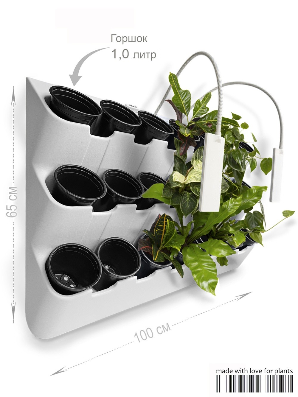 Фитомодуль BOXSAND 21 АЭРО (100х65 см) белый с фитолампами с черными горшками 1,0 литр.