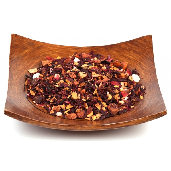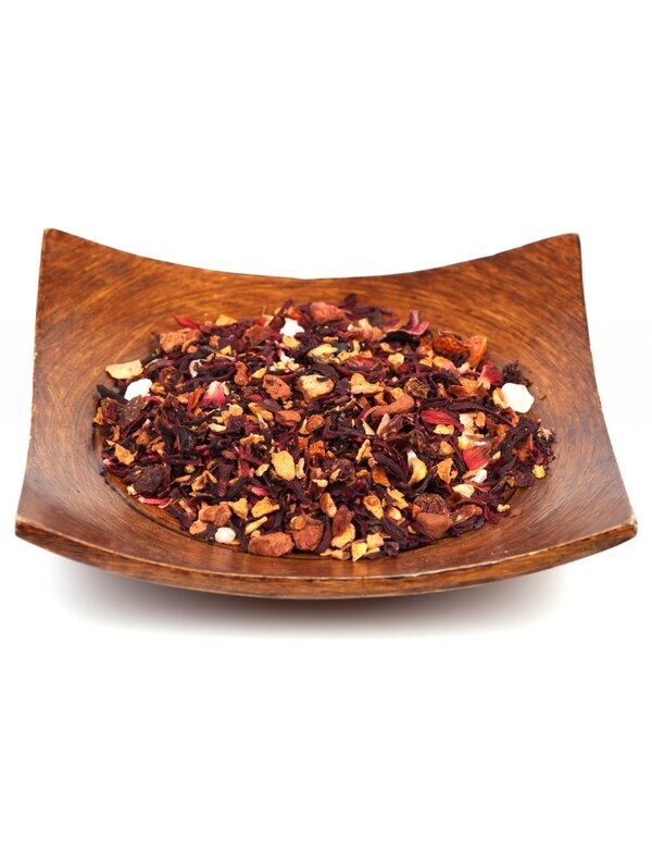 Этот купаж яркий, как солнечный летний день. Он сочетает фруктовые и цитрусовые нотки, которые сливаются, создавая чувственную и насыщенную композицию, на фоне которой постепенно раскрываются пряные аккорды.Состав: гибискус, изюм, кусочки яблока, ананас, папайя, брусника, кусочки малины, ягоды бузины. С добавлнием натурального ароматизатора манго и абрикоса.