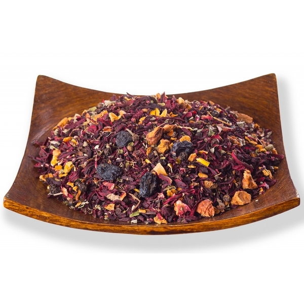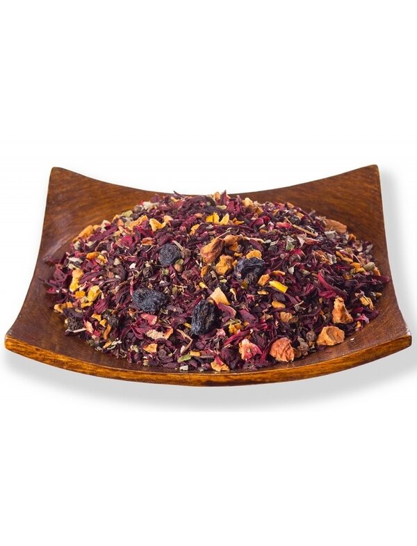 Состав: Фруктовая смесь на основе гибискуса с шиповником, кусочками яблока, миндаля, плодами папайи, кусочками кислой вишни и ванили, ароматизирована натуральными маслами.