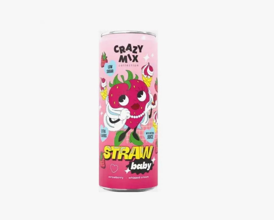 Газированный напиток с натур соком CRAZY MIX StrawBaby 0,33 ж\б