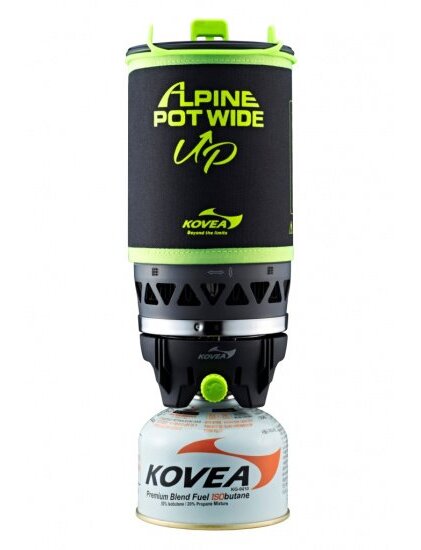 Туристическая газовая горелка Kovea KB-0703WU Alpne Pot Wide Up с кастрюлей увеличенного объема 1,5 л — интегрированная система для приготовления пищи в экстремальных условиях. Это аналог уже нашумевшей и известной во всем мире системы Jetboil PCS.