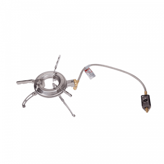 Газовая горелка комплектуется автономным пьезоподжигом, который помещается в пластиковый кофр на молнии. Для использования горелки на цанговых газовых баллонах нужен переходник.