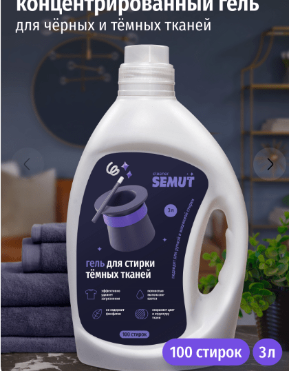 В наше время внешний вид играет значимую роль, а чистая свежая ухоженная одежда создает первое впечатление о человеке. Стирка – это основной и самый важный этап заботы о вещах, а если правильно подобрать жидкое средство для стирки белья, она никогда не навредит, а сделает их только красивее. Гель для стирки черного белья SEMUT создан специально для этой цели.