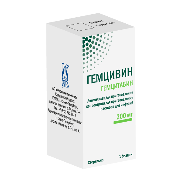 Гемцивин - это противоопухолевый химиотерапевтический препарат (аналог пиримидина), применяемый для лечения рака путем блокирования синтеза ДНК и уничтожения раковых клеток (апоптоза). Используется при немелкоклеточном раке легкого, раке поджелудочной железы, желчных протоков и других опухолях. Поставляется в виде лиофилизата (порошка) для приготовления раствора для инфузий во флаконах (200 мг.).