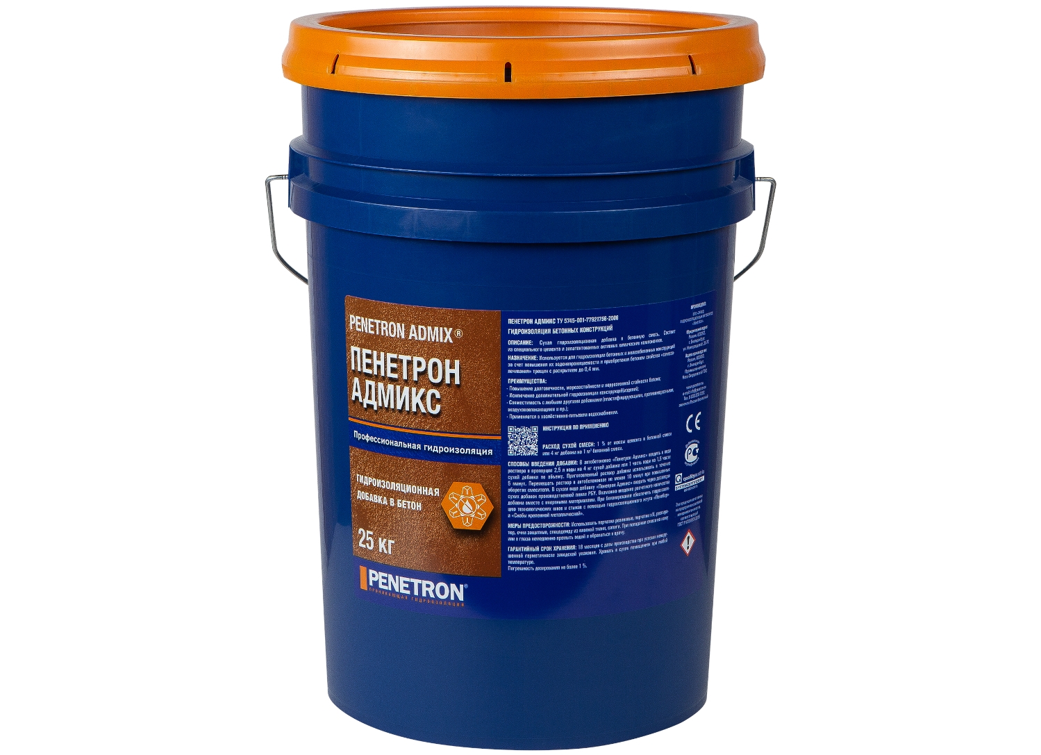 Гидроизоляционная добавка в бетонную смесь Пенетрон Адмикс 25 кг сухая гидроизоляционная добавка для бетонов ΔW3 (повышение марки по водонепроницаемости на 3 ступени). Состоит из специального цемента, активных химических компонентов и пигмента зеленого цвета для контроля наличия добавки в бетонной смеси.Используется для гидроизоляции и защиты от коррозии сборных и монолитных бетонных и железобетонных конструкций за счет повышения их водонепроницаемости и приобретения бетоном свойства «самозалечивания» трещин c шириной раскрытия до 0,4 мм, в том числе образующихся во время всего срока эксплуатации.