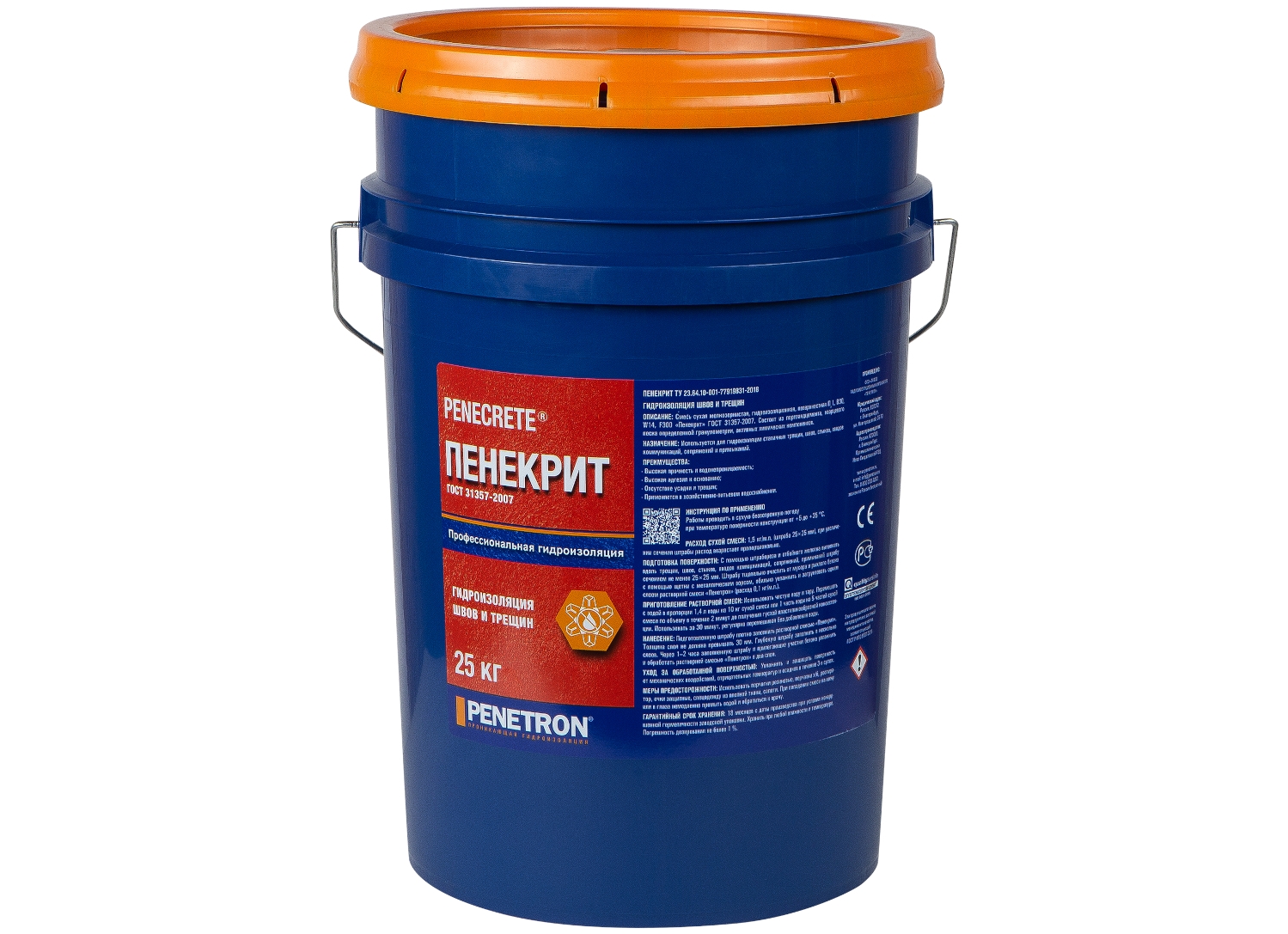 Гидроизоляционный шовный материал Пенекрит 25 кг сухая мелкозернистая, гидроизоляционная, поверхностная смесь Пк1, B30, W14, F300 ГОСТ 31357-2007. Состоит из портландцемента, кварцевого песка определенной гранулометрии, активных химических компонентов. Производится согласно ТУ 23.64.10-001-77919831-2018.Используется для гидроизоляции статичных трещин, швов, стыков, вводов коммуникаций, сопряжений и примыканий в бетонных и железобетонных конструкциях.