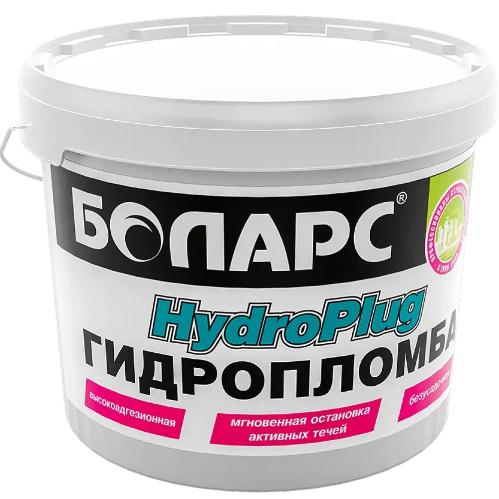 Гидропломба Hydroplug БОЛАРС предназначена для мгновенной остановки течей через трещины, швы, отверстия в бетонных конструкциях, кирпичных, каменных кладках на объектах гражданского и промышленного строительства. Разрешена для применения в хозяйственном и питьевом водоснабжении. Может применяться для быстрого закрепления закладных элементов, анкеров, болтов, дюбелей. В качестве ремонтной смеси для заделки трещин и предотвращения утечек в бacсeйнах, peзepвуapах с водой, гидротехнических сооружениях, а также для срочного устранения дефектов бетона (сколов, выбоин и т.д.). Изготовлена на основе быстротвердеющего цемента с использованием гидрофобных добавок.