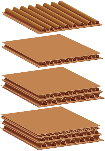 Гофрокартон, слово говорит само за себя - волнообразный или складчатый, самый простой гофрокартон изготавливается из двух (СЛОЁВ): первый волнистый - ГОФРИРОВАННЫЙ (ФЛЮТИНГ), второй плоский (ЛАЙНЕР), скрепление в зонах прилегания клеем. Таким образом появляется большая жесткость, чем если просто склеить два листа картона. Для достижения еще большей прочности добавляются еще слои: