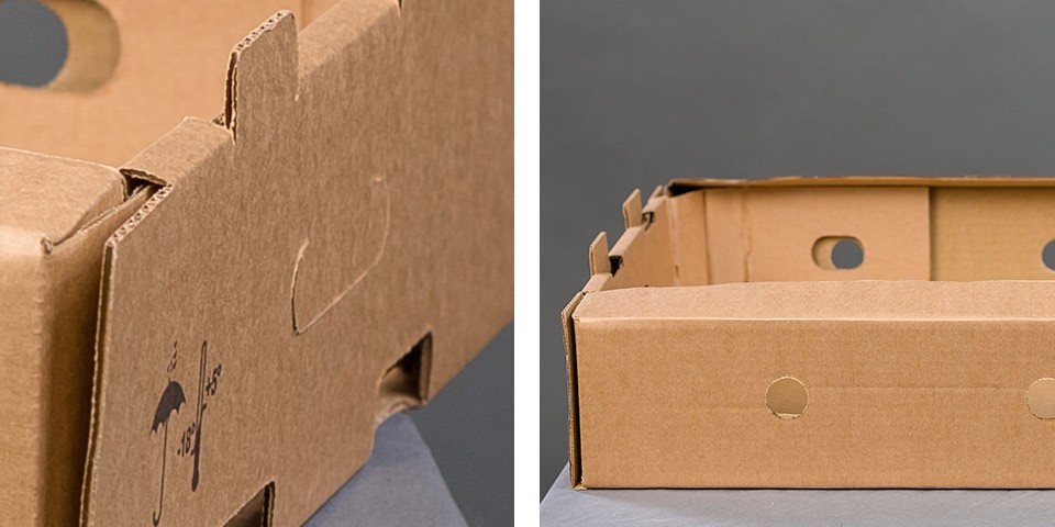 Картонные коробки-лотки изготавливаются без крышки, с усиленным дном и в основном применяются для упаковки различной плодоовощной продукции, кондитерских изделий, молочной продукции, а также для транспортировки продукции в стеклянных банках и бутылках. Гофроподдоны могут быть различной конфигурации, а также с круглыми отверстиями для вентиляции. По обоим сторонам лотка есть усиленный прорубные ручки для переноски, а дно разработано таким образом, чтобы было удобно штабелировать лотки друг на друга.