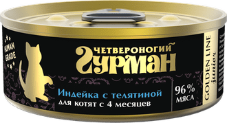 Четвероногий гурман “Golden line” для котят – это влажный корм суперпремиум класса, приготовленный из мяса качества Human grade (пригодного в пищу человеку). Корм полностью натуральный – в его составе нет искусственных красителей, ароматизаторов, усилителей вкуса и ГМО.