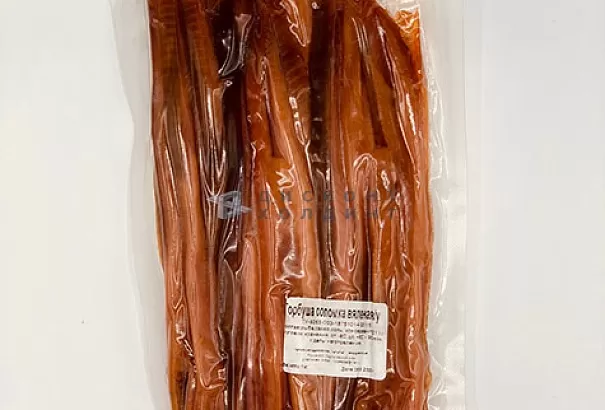 Отборное филе горбуши нарезается тонкими полосками и засаливается. Производители используют современные технологии, которые позволяют сохранить мякоть упругой и сочной. вяленая горбуша имеет нежный вкус и приятный аромат.