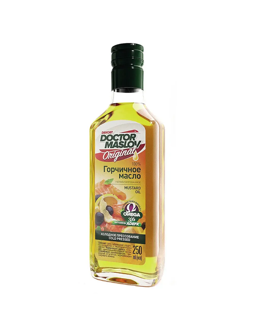 Горчичное масло холодного отжима 250 мл полезное и ароматное горчичное масло обладает высокой пищевой ценностью, биологической активностью и является оптимально сбалансированным по содержанию необходимых витаминов(А, Е, D, B3, B4, B6, К, Р, F), полиненасыщенных жирных кислот Омега-3 и Омега-6, а также макро- и микроэлементов.Благодаря такому составу горчичное масло эффективно поддерживает иммунитет в течение всего года, а также сохраняет эластичность и молодость кожи. Горчичное масло обладает тонким вкусом, изысканным ароматом, а также диетическими свойствами, недаром раньше его называли императорским маслом. Идеально для заправки салатов, гарниров и супов. Используется в холодных и горячих блюдах из морепродуктов и мяса. Прекрасное средство для приготовления домашних консервов, овощных и рыбных блюд. Блинам придает золотистый оттенок и помогает долго не черстветь.