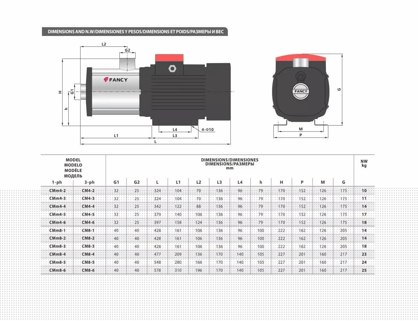 Горизонтальный многоступенчатый центробежный насос Fancy CM 8-5