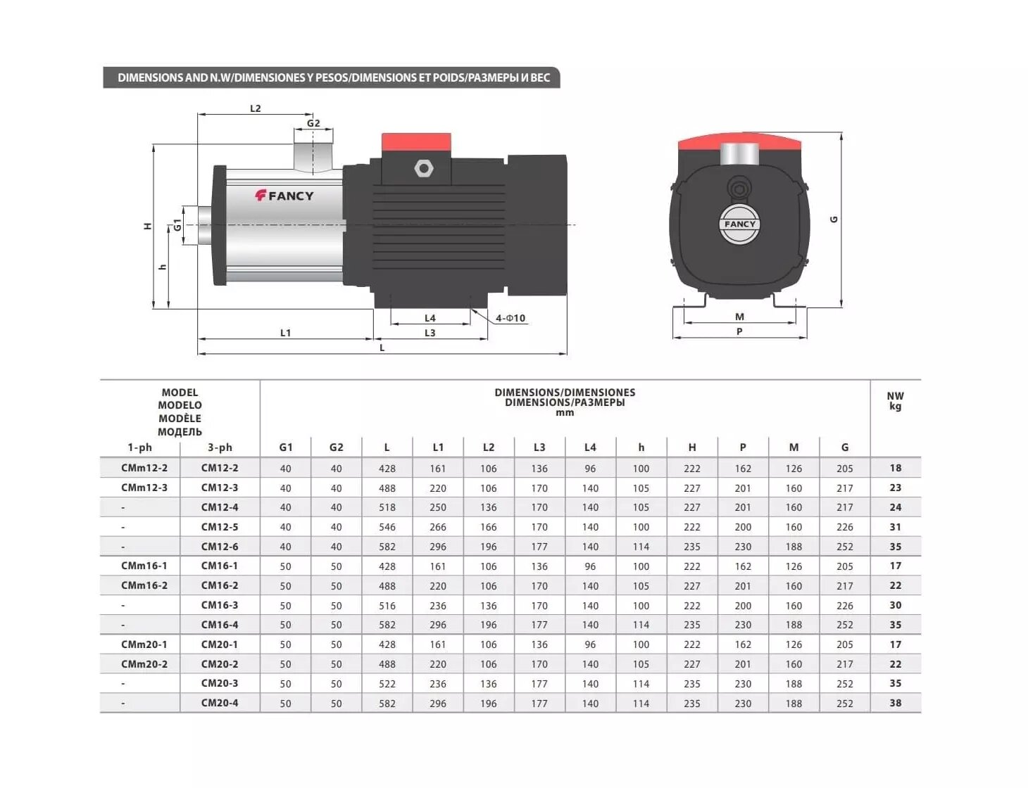 Горизонтальный многоступенчатый центробежный насос Fancy CM16-4