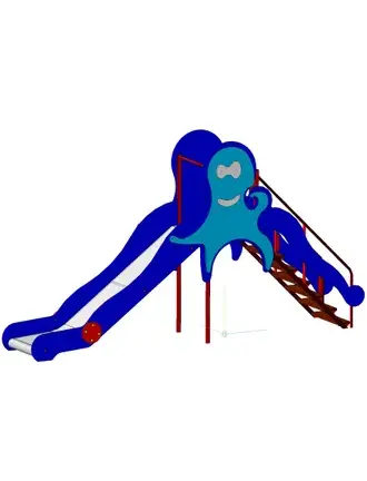 Горка "Осьминог" - это элемент игрового оборудования, стилизованный под осьминога, представляющий собой горку, предназначенную для активных игр детей, развития моторики и координации, а также для развлечения на площадках и в парках. Размеры горки - 3830*696*2075 м. Высота горки - 1200мм.