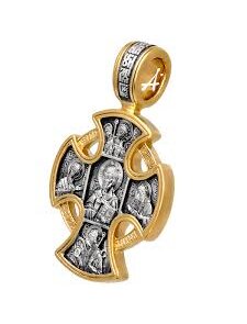 Господь Вседержитель. Ангел Хранитель - это образ Иисуса Христа как Творца и Судии мира, символизирующий Божий промысел. Ангел Хранитель — это данный Богом при крещении духовный защитник, наставник, оберегающий душу и тело человека. Они призваны спасать человека, помогать в беде и наставлять на истинный путь, соединяя человека с Богом. На обороте креста в центре изображена икона Ангела Хранителя. Ангел Хранитель дается Богом при Крещении и всю жизнь заботится о человеке: бережет от дьявольских козней и старается оградить от внезапной смерти, чтобы человек не умер без покаяния на радость бесам. Ангел защищает душу от непрестанных нападений духов злобы и после смерти становится ее проводником в загробном мире. На нательный крест образ Ангела Хранителя помещается для того, чтобы человек всегда помнил о нем, любил его и молился ему. Материалы - серебро 925 пробы, позолота 999 пробы. Размеры - 3,3*2,1*0,2 мм. Средний вес - 8.00 гр.
