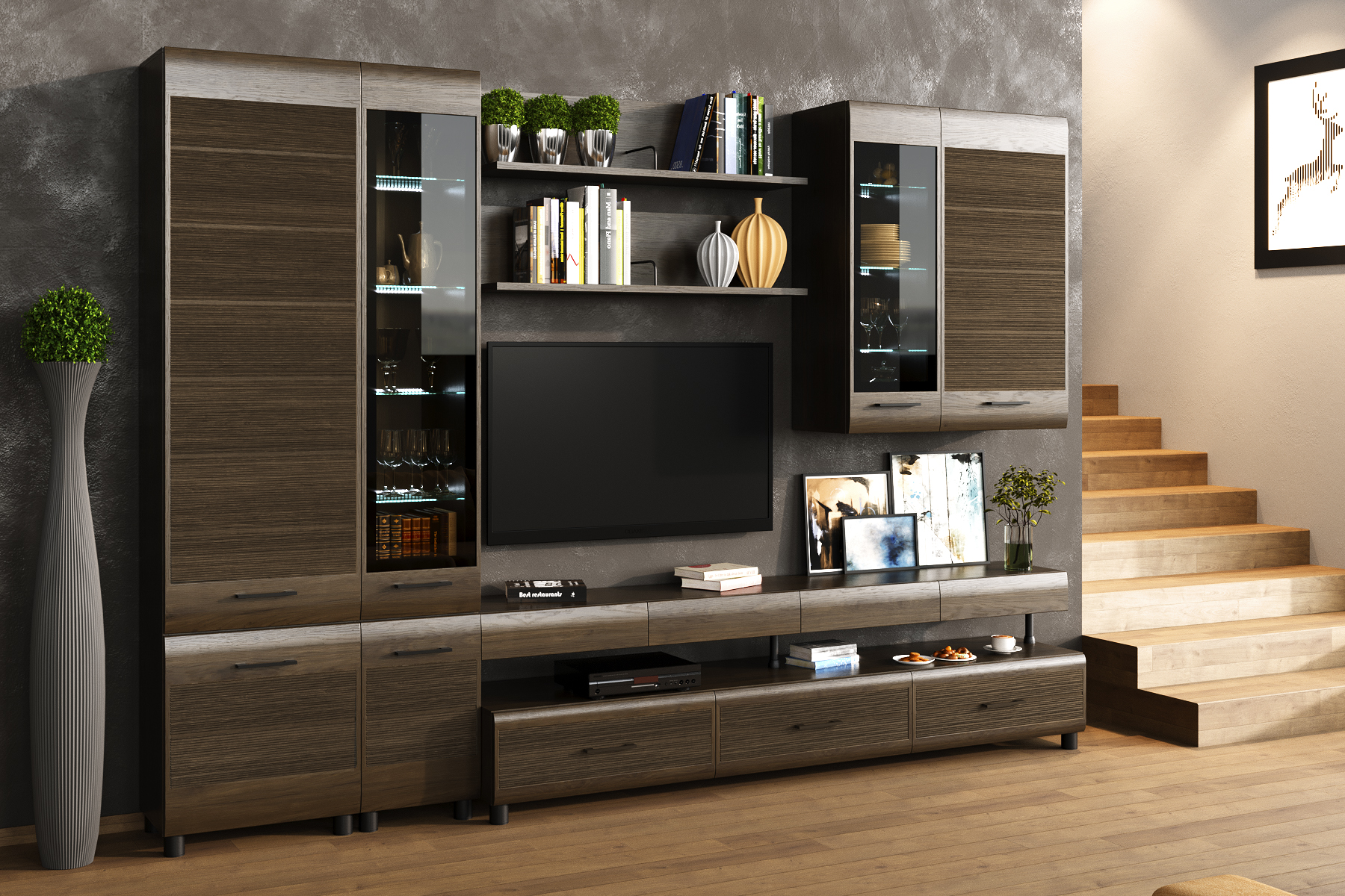 ГОСТИНАЯ-КАМЕЛИЯ-1-ГТ - композиция составлена из : ШК-2641, ШК-2643, ПЛ-2604, ПЛ-2604, АН-2663, ТБ-2671, АН-2622, АН-2663.Применяемые материалы (класс эмиссии Е1): корпус ЛДСП, фасад МД,, габаритные размеры: ВхШхГ - 2172х3060х452 мм, размер ниши под телевизор: ВхШ - 1000х2000 мм .Композиция изготавливается в различных цветовых вариантах. Петли в ГОСТИНАЯ-КАМЕЛИЯ-1-ГТ комплектуются доводчиками , которые обеспечивают бесшумное закрытие створки. Выдвижные ящики комплектуются направляющими , которые обеспечат долгую превосходную функциональность. Встроенный демпфер Silent System позволяет закрывать ящик плавно и бесшумно.