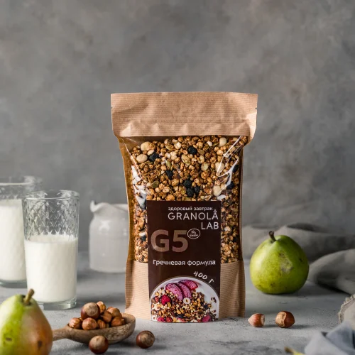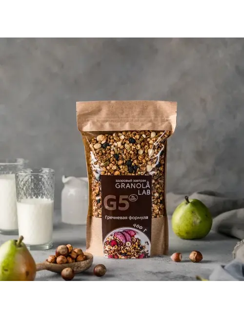 Мы переосмыслили продукт, знакомый с детства, и решили, что гречка хороша в любом виде. В этой граноле ростки зелёной гречки, гречневые хлопья и воздушные зёрна, запеченные в натуральном финиковом сиропе. Ммм!