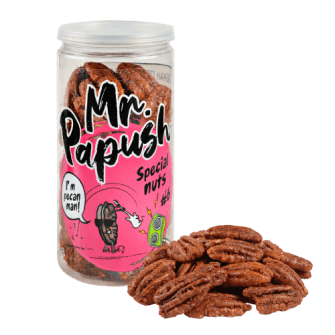 Насыщенные и хрустящие орешки пекан, слегка подслащённые сиропом топинамбура, раскрывают букет вкусов и ароматов в каждом укусе. Смесь красного чили, сладкой паприки и щепотки кайенского перца придаёт вкусу остроту и глубину, а нотки корицы и сушёного чеснока добавляют тепла и насыщенности.