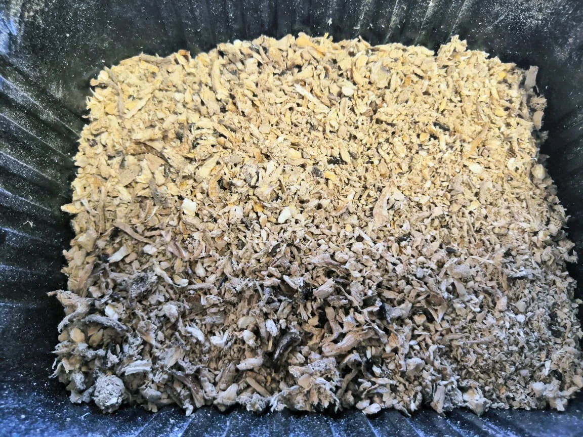 Шампиньон высушенный и перемолотый в крупную фракцию. Он удобен быстротой использования, так как его не требуется замачивать, как сушёные грибы, или долго тушить, чтобы раскрылся грибной аромат. При измельчении грибов в порошок так же улучшается и усваиваемость грибов при употреблении в пищу.