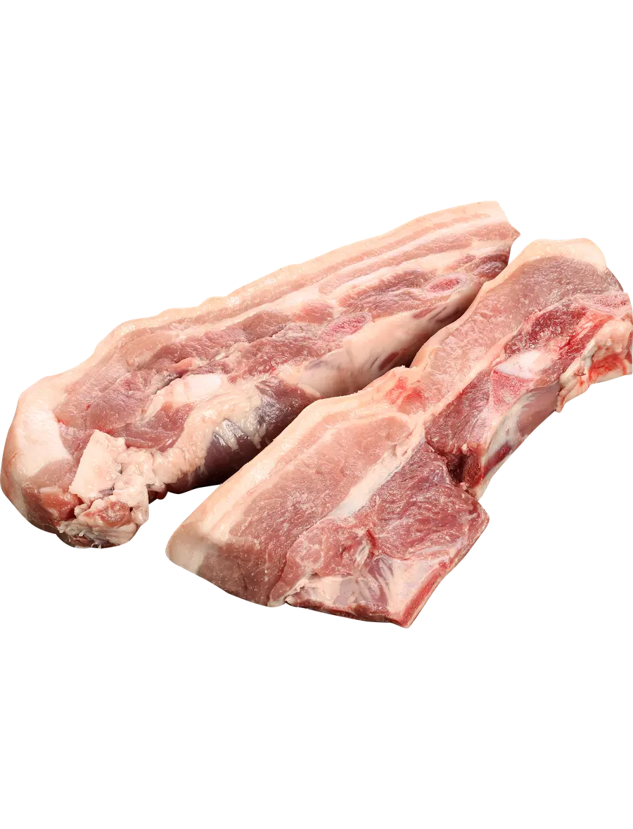 Грудинка свиная на кости используется для приготовления разнообразных первых и вторых блюд. Из грудинки получаются вкусные и наваристые бульоны для супов, также это мясо можно жарить, тушить и запекать в духовом шкафу.
