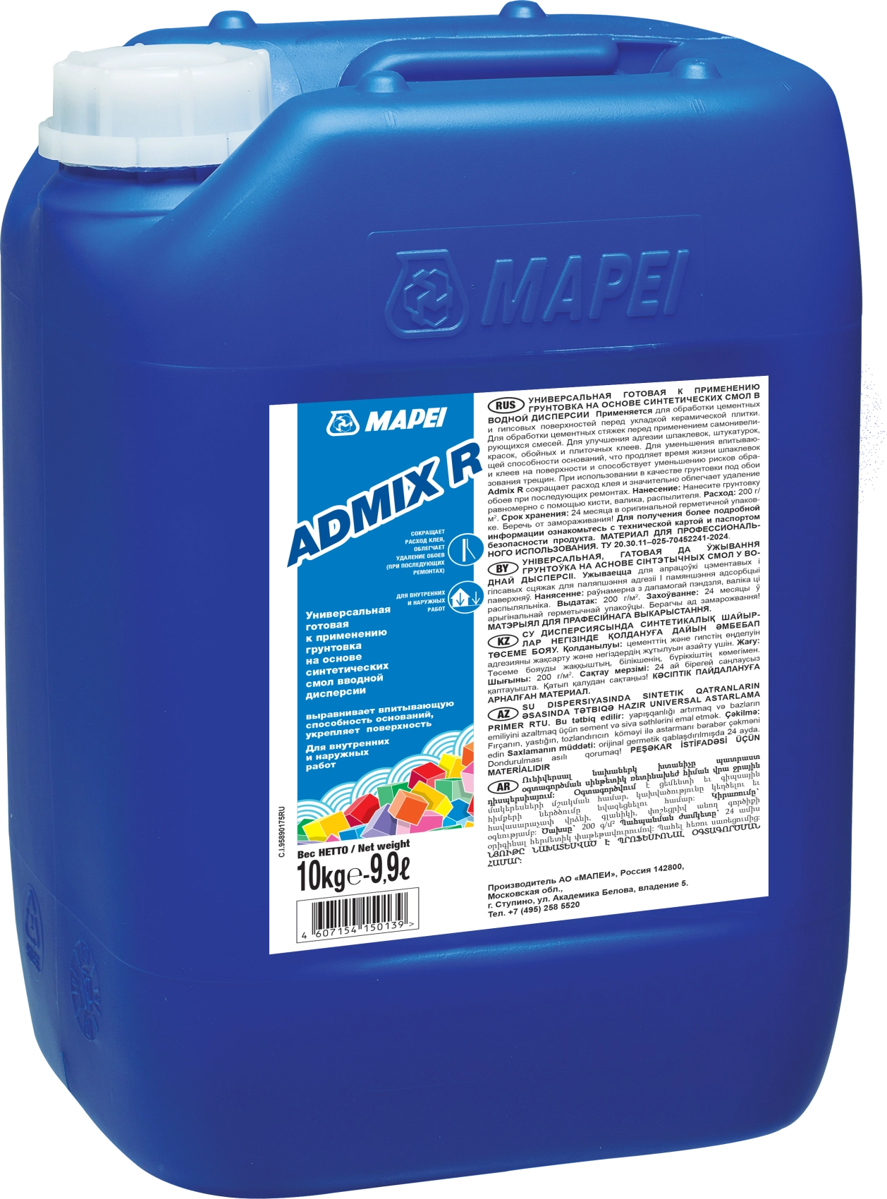Грунтовочный состав Admix R универсальный готовый к применению на основе синтетических смол в водной дисперсии для внутренних и наружных работ. Применяется для: обработки цементных и гипсовых оснований перед укладкой покрытий (керамическое покрытие, керамогранит, агломерат, натуральный камень, мозаика); обработки цементных стяжек перед укладкой самовыравнивающихся смесей; нанесения между последовательными слоями шпаклевки после полного высыхания предыдущего слоя; обеспечения однородной впитывающей способности на цементных и гипсовых основаниях; обработки основания перед окрашиванием и приклейкой обоев.