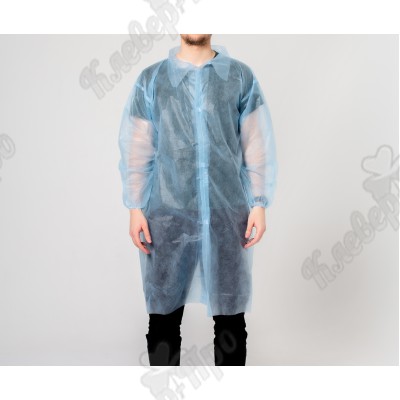 Халат процедурный на липучке, рукав на манжете голубой