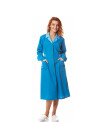 Халат сшит из ткани приятного голубого цвета. Воротник с лацканами, хлястики и канты по линии плеч выполнены из отделочной ткани светло-голубого цвета. Изделие относится к подгруппе спецодежды, защищающей от общепроизводственных загрязнений, и может быть рекомендовано компаниям, чья сфера деятельности связана с обслуживанием населения.