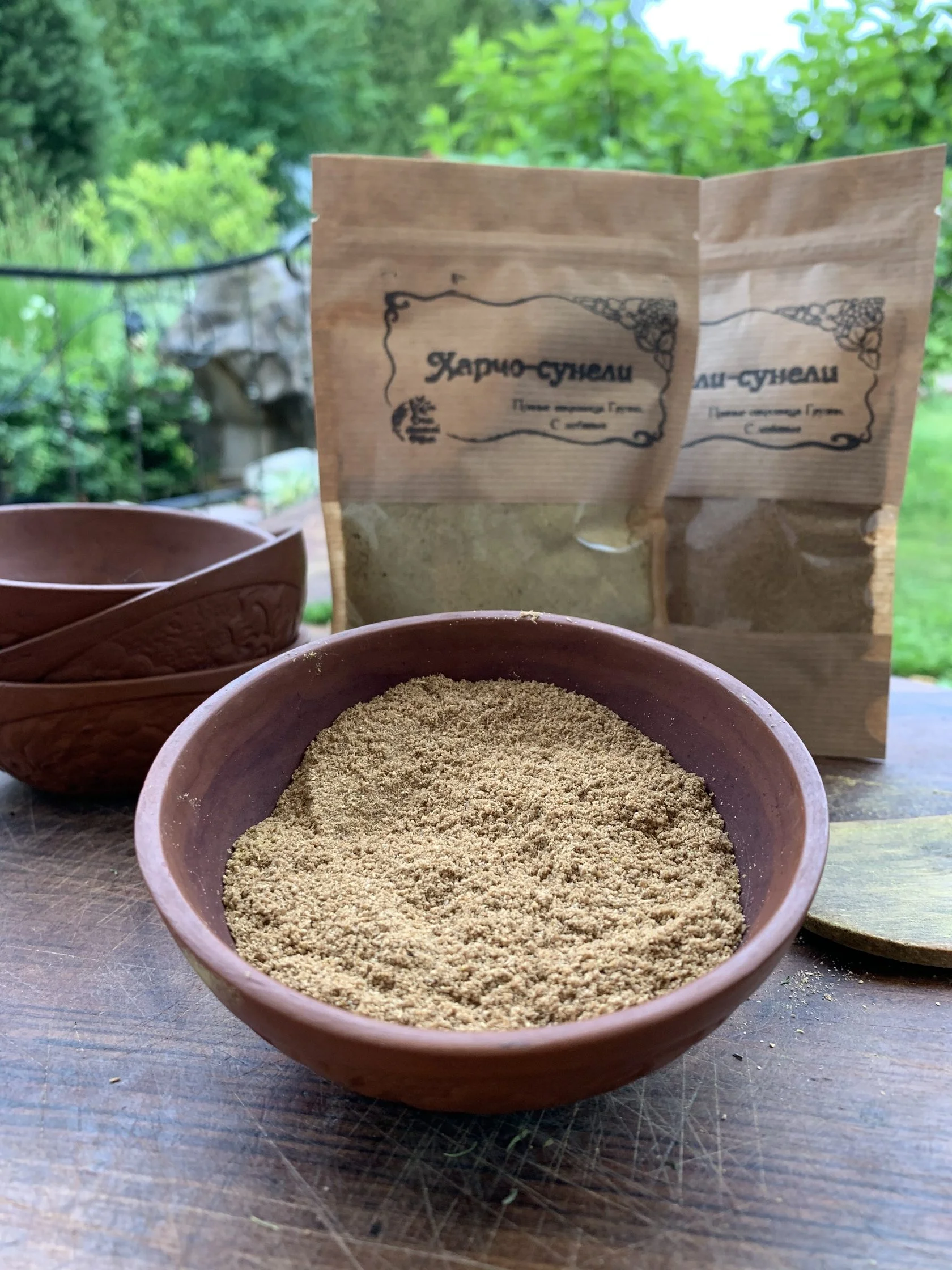 Харчо-сунели - эго грузинская сухая приправа, которую можно добавлять к любым мясным блюдам. Также харчо-сунели прекрасно сочетается с птицей и рыбой. В небольшом количестве может добавляться в первые блюда.