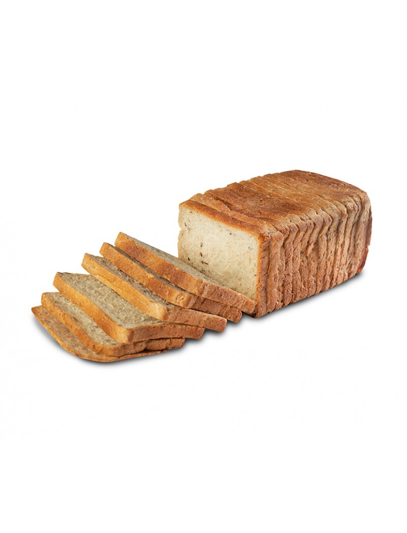Хлеб из пшеничной муки с добавлением семян подсолнечника, льна, овсяных хлопьев и отрубей, тостовый. Упакованный, в нарезке.