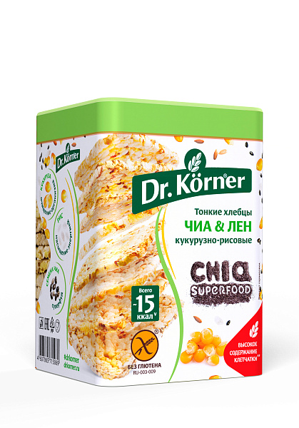 Тонкие цельнозерновые хлебцы Dr. Korner с семенами чиа и льна - максимум пользы и невероятного вкуса для истинных гурманов. Благодаря высокому содержанию пищевых волокон хлебцы помогают улучшить пищеварение, легко усваиваются и дарят чувство сытости. Хлебцы с чиа и льном - постный, низкокалорийный суперфуд без глютена, который является отличной альтернативой жирным чипсам, сухарикам и прочим вредным снекам.