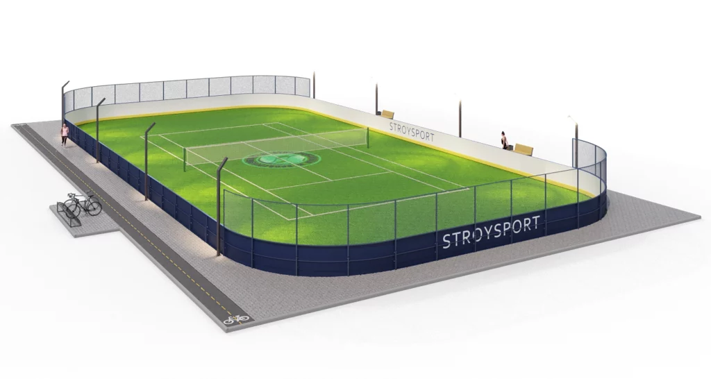 Хоккейная коробка - это огороженная площадка с бортами для игры в хоккей, которая служит для безопасных тренировок и соревнований, а благодаря своей универсальности, зимой заливается льдом для хоккея и катания на коньках, а летом может трансформироваться в площадку для баскетбола, мини-футбола, волейбола и других игр. Она создает безопасное и компактное игровое пространство, позволяя проводить занятия круглый год, и является центром спортивной жизни в дворах, школах и спорткомплекcах. Стеклопластиковые панели хоккейных бортов исполнены в виде листа, соответственно отбойная пластина желтого цвета выполнена из ПНД ПЭ-300 смонтированной на лист при помощи заклепок. Вход в игровую зону (калитка) для игроков оснащён замком нового поколения, что в свою очередь повышает ресурс и надежность использования, короткий ход кнопки, удобство использования как взрослыми и детьми за счет легкости открывания. Поручень хоккейного борта выполнен из ПНД прямой формы синего цвета. Размер - 20*40м.