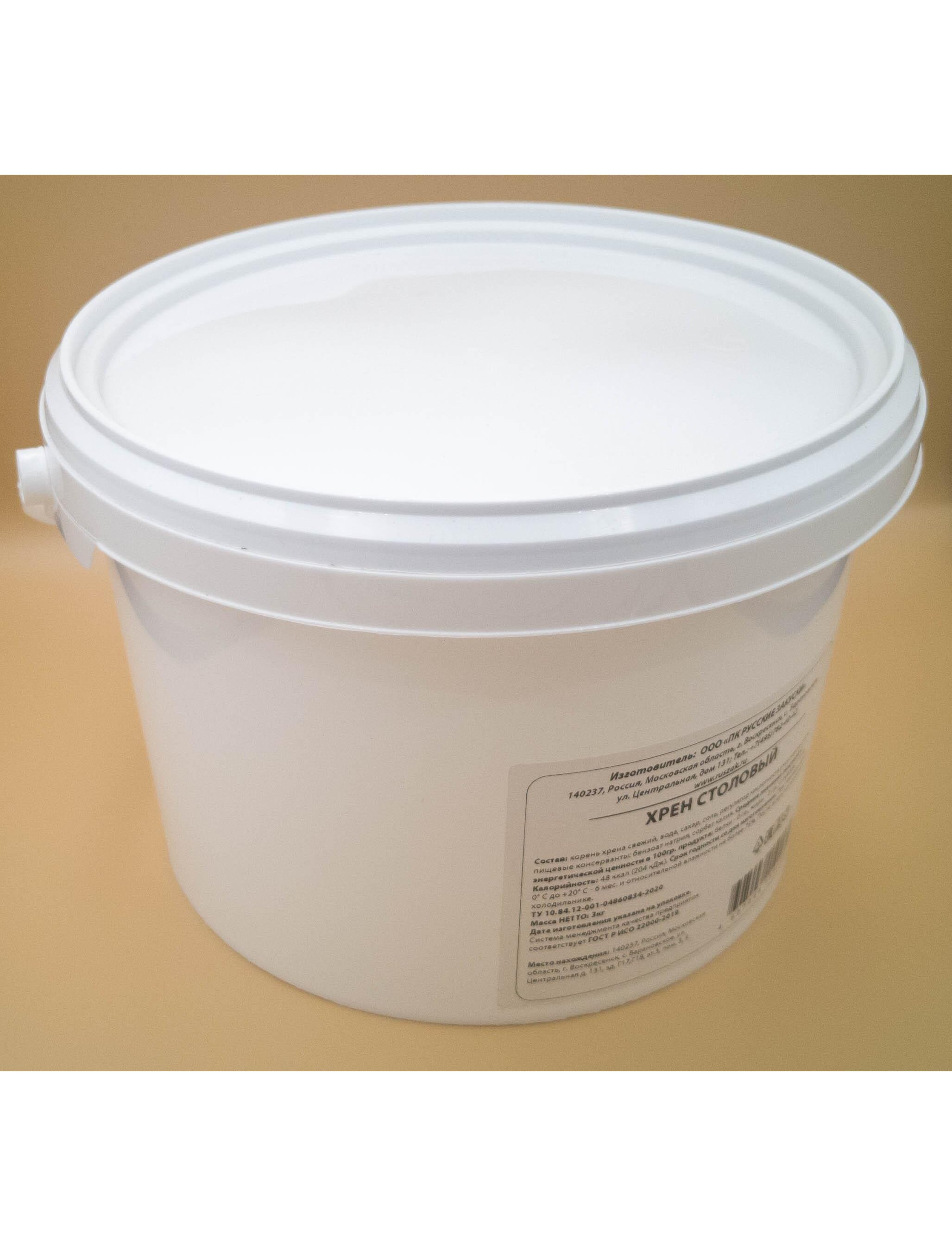 Хрен Столовый 3 кг является традиционной приправой к мясу и рыбе, хорош с холодцом.В состав входят: корень хрена свежий, вода питьевая, соль, сахар, уксус (вода, регулятор кислотности — уксусная кислота), масло растительное, консервант — бензоат натрия.